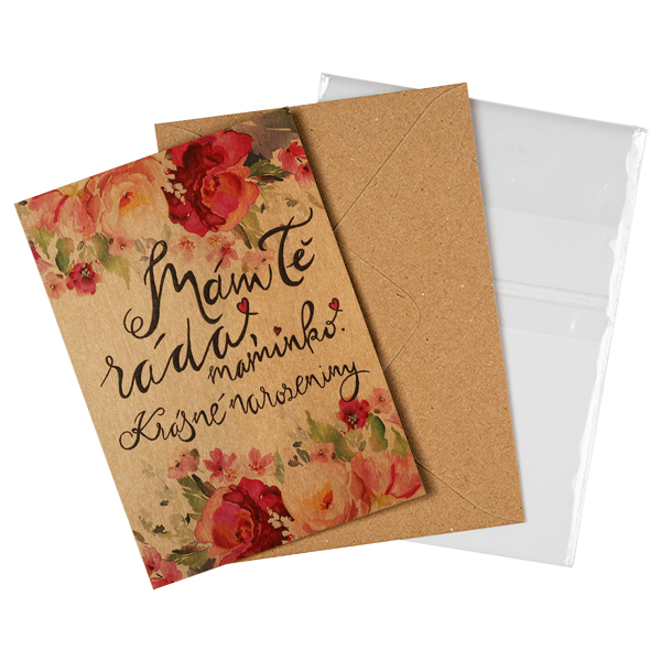 Přání je vyrobeno z recyklovaných materiálů. Kraft je odolný a uchovává si přirozenou barvu a texturu, která nám je velmi sympatická. Zároveň výroba tohoto papíru není nijak složitá, a tak minimálně zatěžuje životní prostředí.