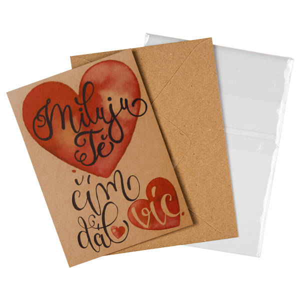 Přání je vyrobeno z recyklovaných materiálů. Kraft je odolný a uchovává si přirozenou barvu a texturu, která nám je velmi sympatická. Zároveň výroba tohoto papíru není nijak složitá, a tak minimálně zatěžuje životní prostředí.