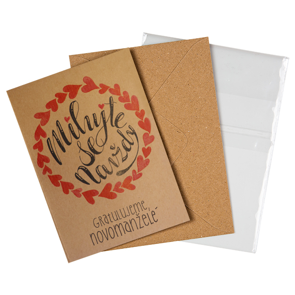 Přání je vyrobeno z recyklovaných materiálů. Kraft je odolný a uchovává si přirozenou barvu a texturu, která nám je velmi sympatická. Zároveň výroba tohoto papíru není nijak složitá, a tak minimálně zatěžuje životní prostředí.