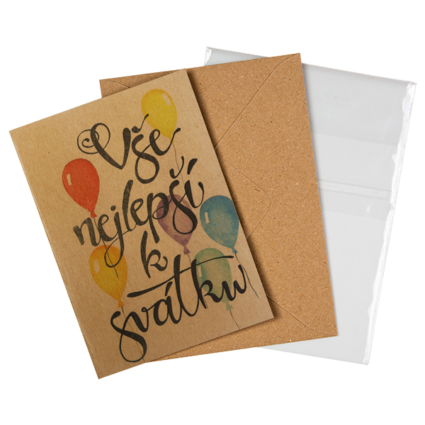 Přání je vyrobeno z recyklovaných materiálů. Kraft je odolný a uchovává si přirozenou barvu a texturu, která nám je velmi sympatická. Zároveň výroba tohoto papíru není nijak složitá, a tak minimálně zatěžuje životní prostředí.