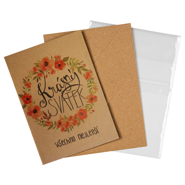 Přání je vyrobeno z recyklovaných materiálů. Kraft je odolný a uchovává si přirozenou barvu a texturu, která nám je velmi sympatická. Zároveň výroba tohoto papíru není nijak složitá, a tak minimálně zatěžuje životní prostředí.