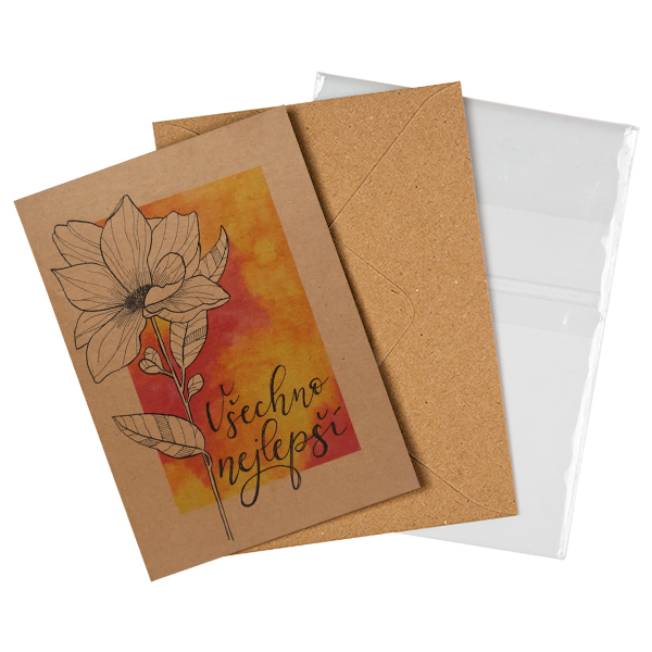 Přání je vyrobeno z recyklovaných materiálů. Kraft je odolný a uchovává si přirozenou barvu a texturu, která nám je velmi sympatická. Zároveň výroba tohoto papíru není nijak složitá, a tak minimálně zatěžuje životní prostředí.