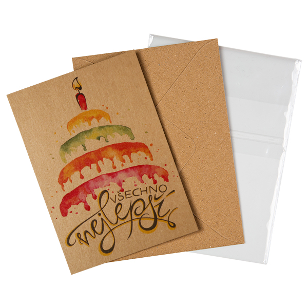 Přání je vyrobeno z recyklovaných materiálů. Kraft je odolný a uchovává si přirozenou barvu a texturu, která nám je velmi sympatická. Zároveň výroba tohoto papíru není nijak složitá, a tak minimálně zatěžuje životní prostředí.