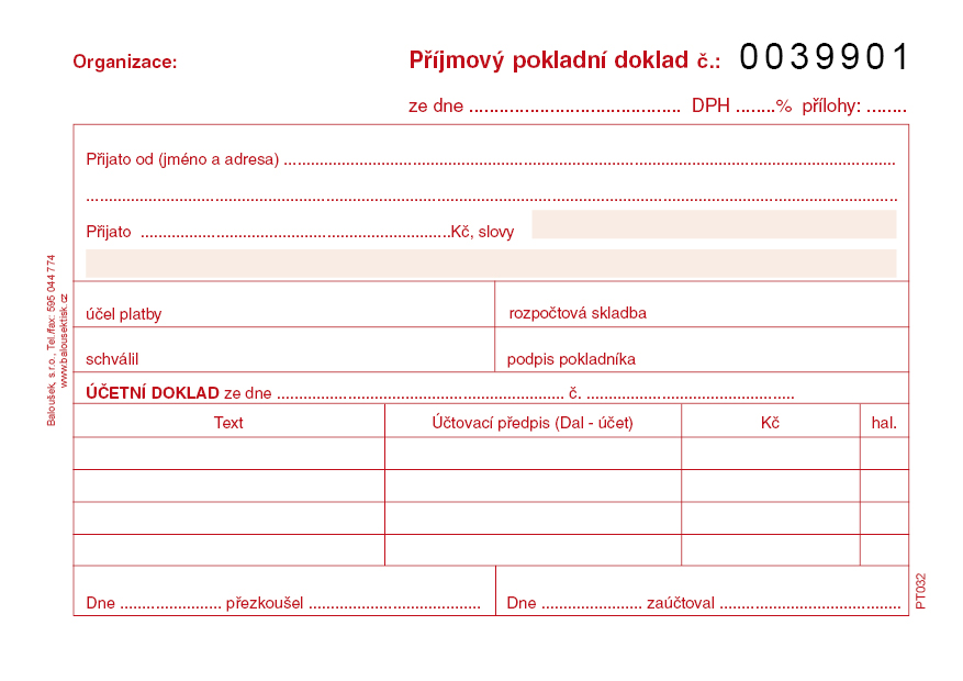Dotaz na zboží: Příj. pokl.dokl. i pro pod.účet. A6 čís. (PT032)