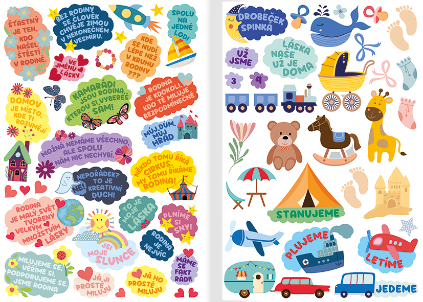 Exkluzivní samolepkový sešit s názvem Naše rodina dodá fotografiím ve Vašem albu výjimečnost. S našimi krásnými designy můžete ozdobit každou stránku alba a zachytit tak nezapomenutelné okamžiky pomoci krásných samolepek. Každá samolepka je pečlivě navržená a vyrobená s láskou, aby podtrhla jedinečnost každé fotografie. Dejte albu tu správnou finální podobu!