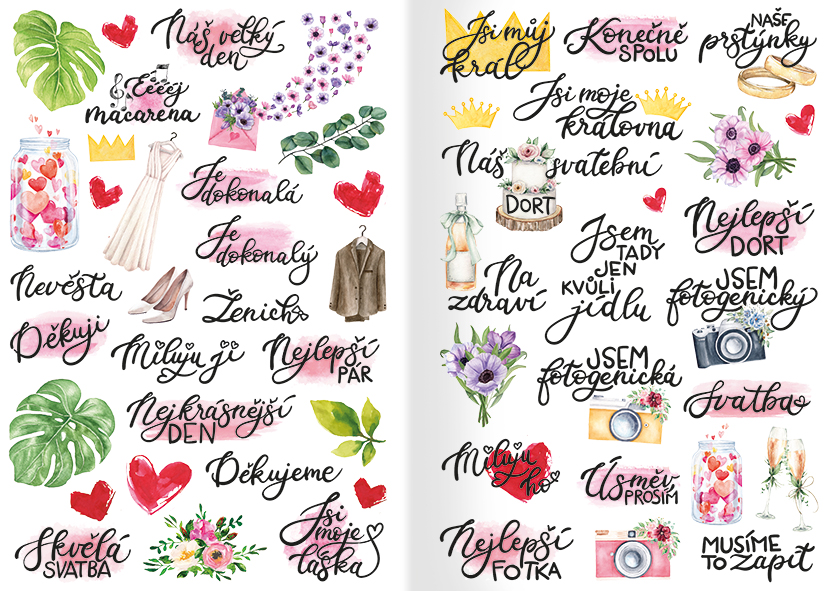 Exkluzivní samolepkový sešit s názvem Svatební album dodá Vašemu fotoalbu ten správný šmrnc. S našimi krásnými designy můžete ozdobit každou stránku alba a zachytit tak nezapomenutelné okamžiky Vašeho velkého dne. Každá samolepka je pečlivě navržená a vyrobená s láskou, aby podtrhla jedinečnost svatební atmosféry. Dejte albu tu správnou finální podobu!