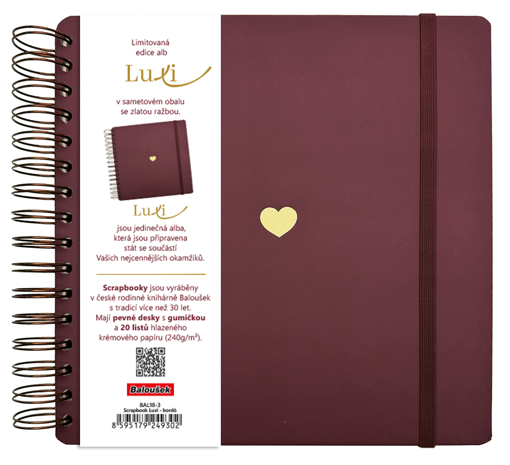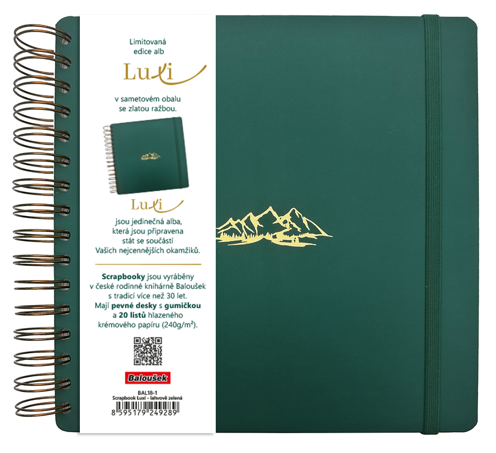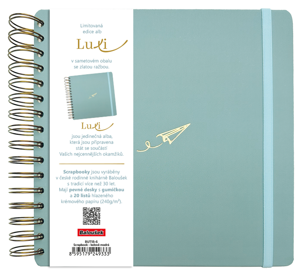 Alba jsou ručně vyráběná v České republice. Mají pevné desky s gumičkou a uvnitř je 40 stran 240g papíru, který umožní do alba vlepovat fotografie nebo psát různými popisovači. Počet stran je přizpůsoben spirále tak, aby se po zaplnění alba stále pohodlně uzavíralo.