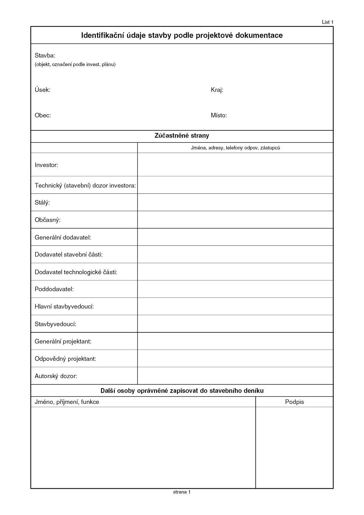 Identifikační údaje stavby podle projektové dokumentace (list 1)