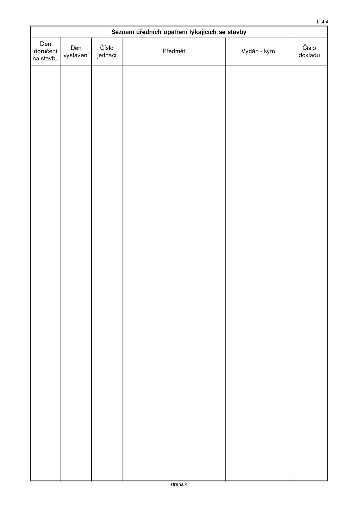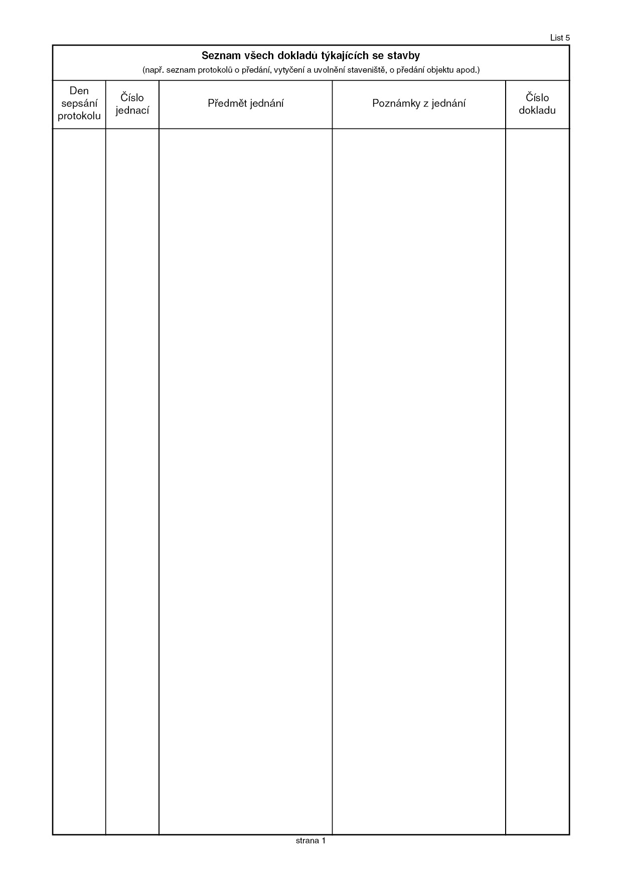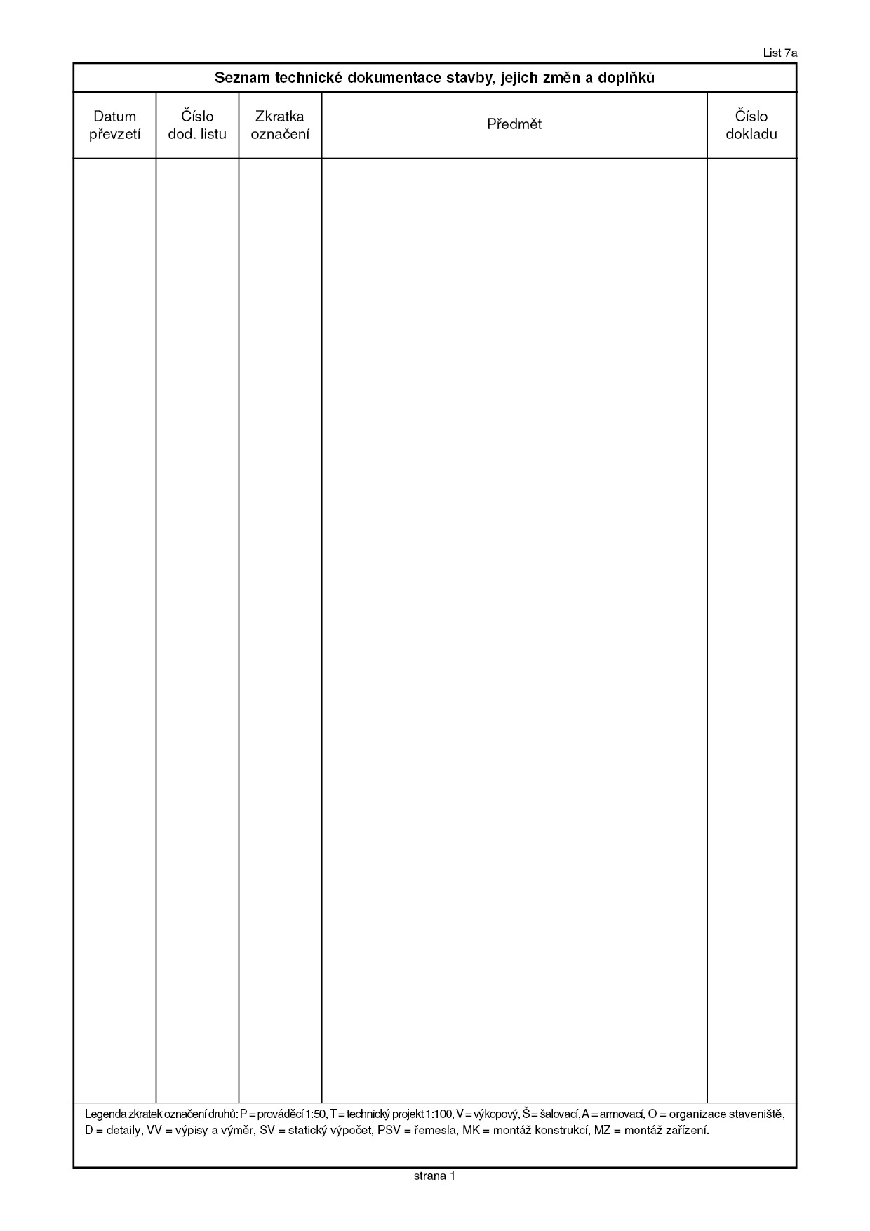 Seznam technické dokumentace stavby, jejich změn a doplňků (list 7a)