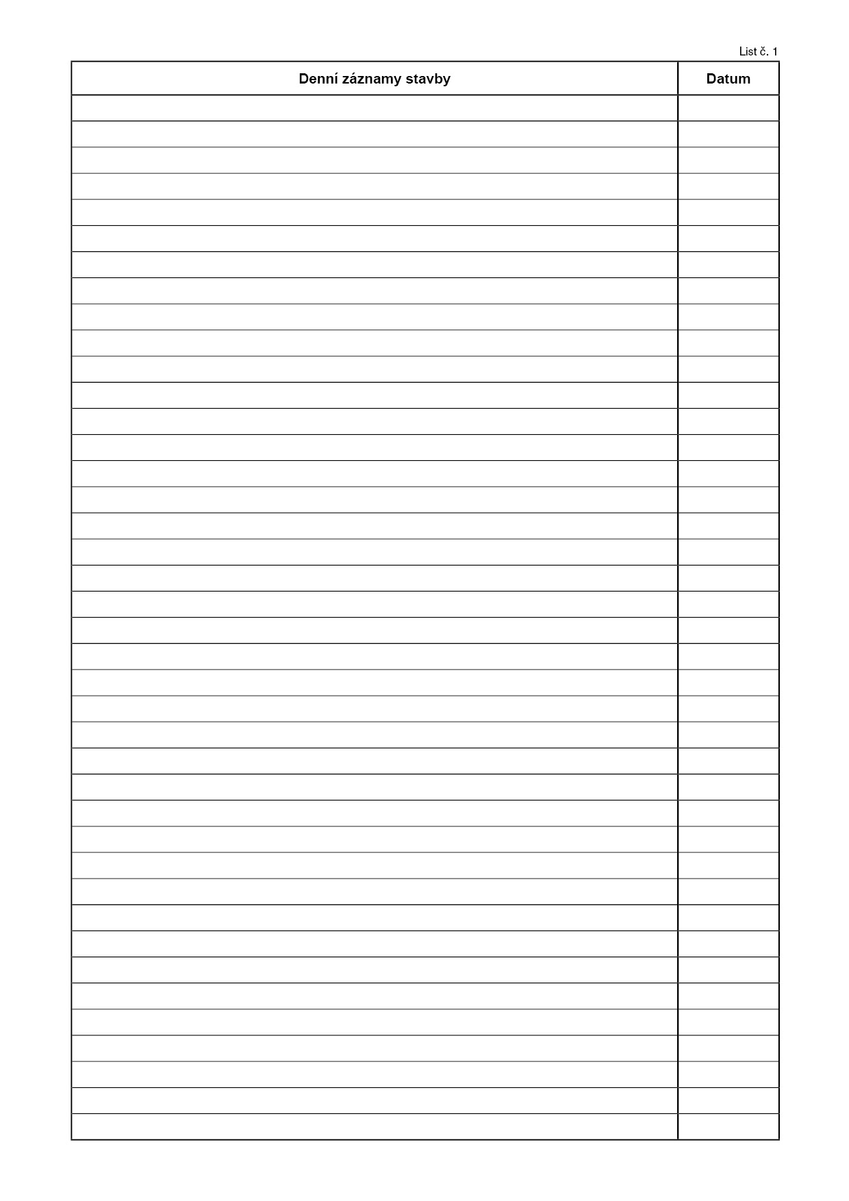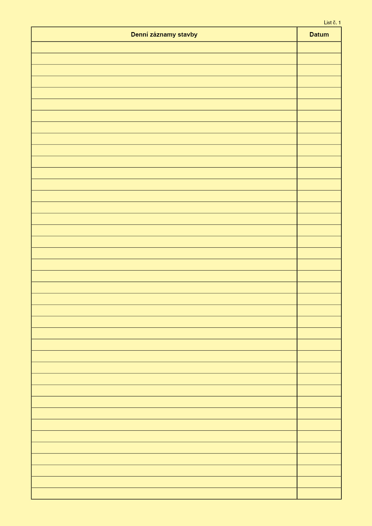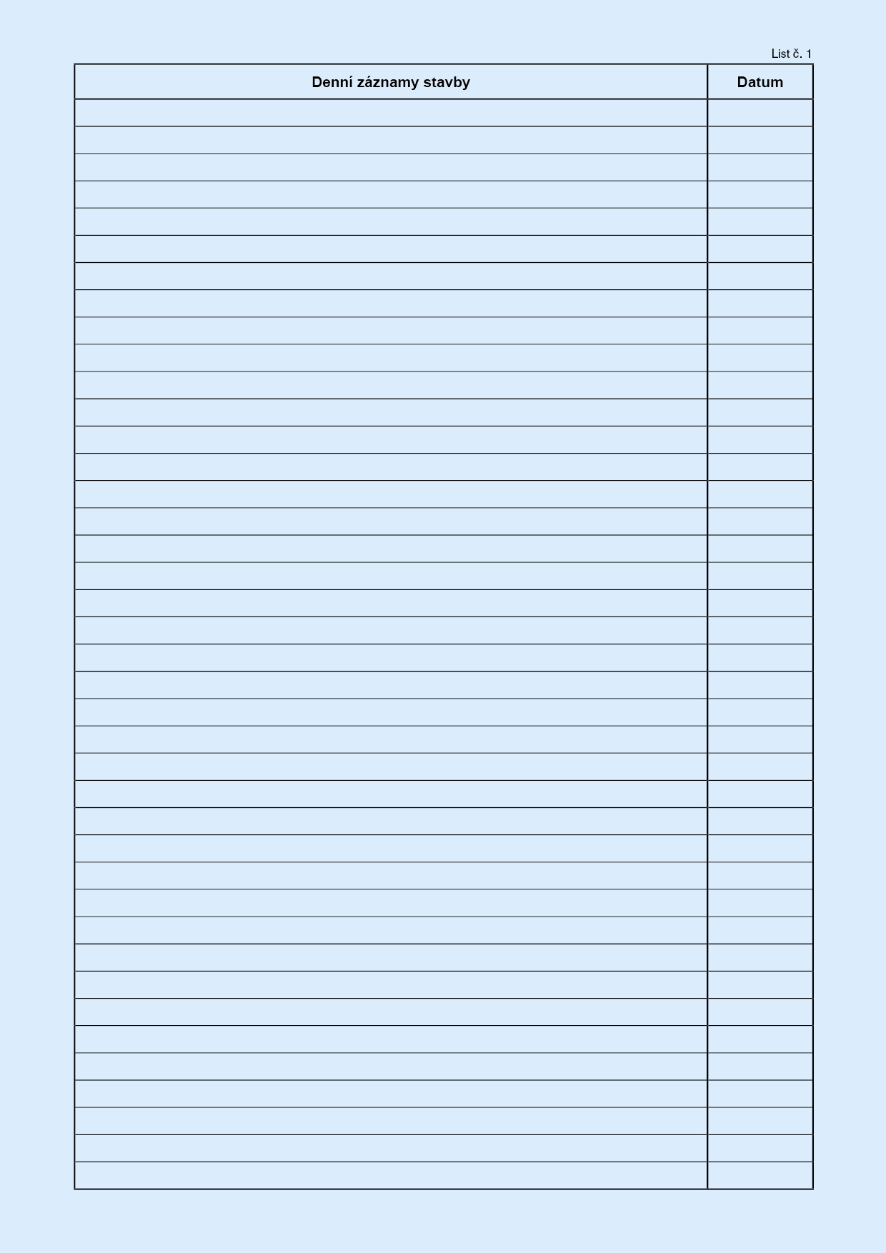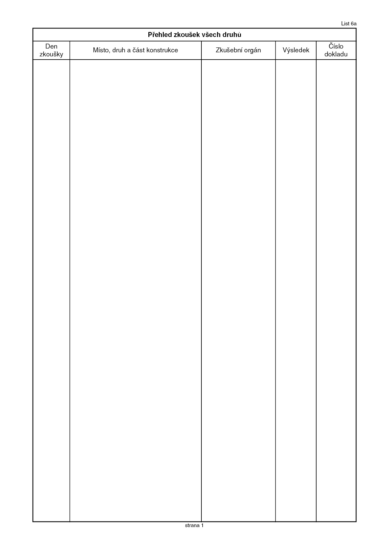 Seznam technické dokumentace stavby, jejich změn a doplňků (list 7a)