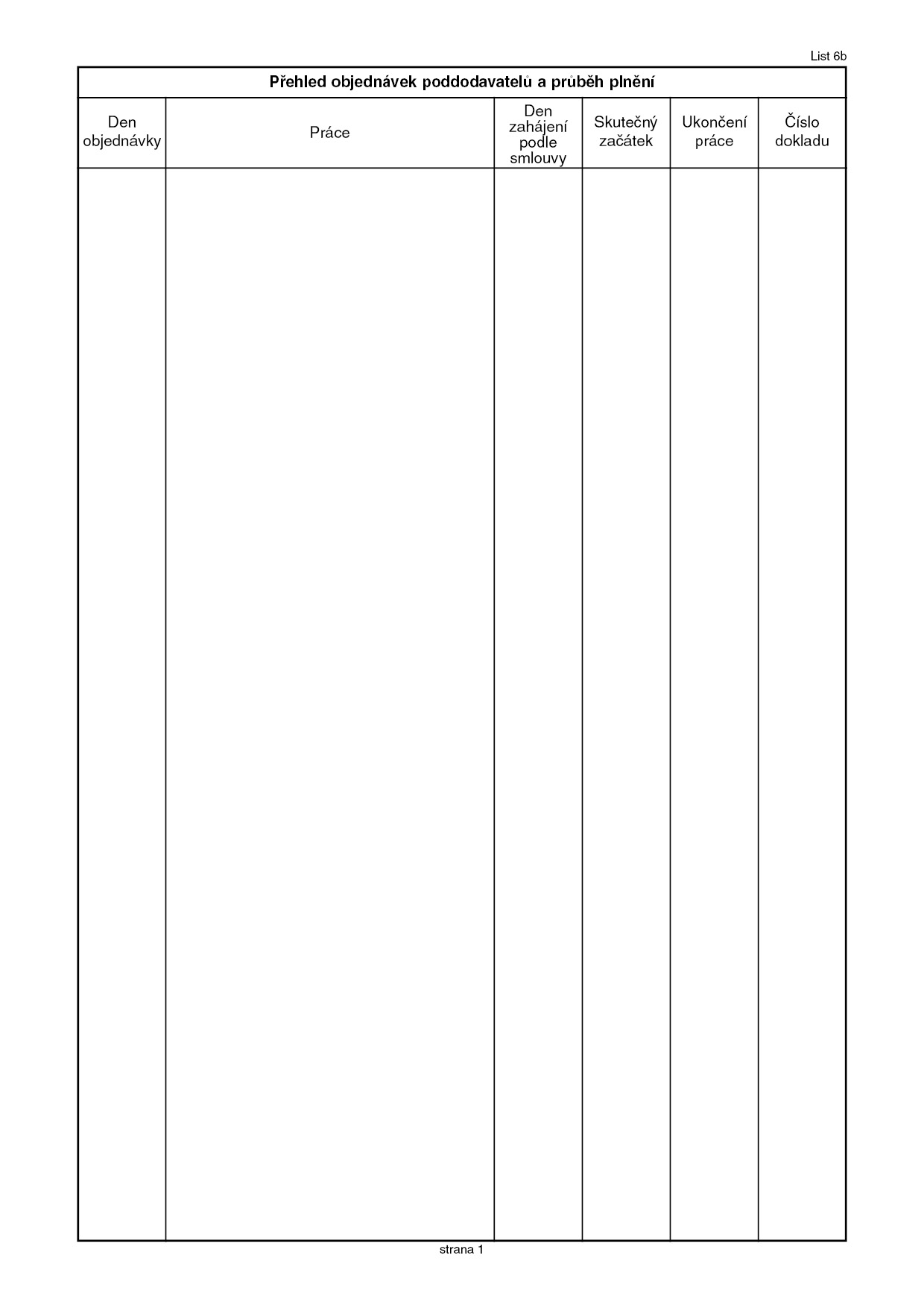 Přehled objednávek poddodavatelů a průběh plnění (list 6b)