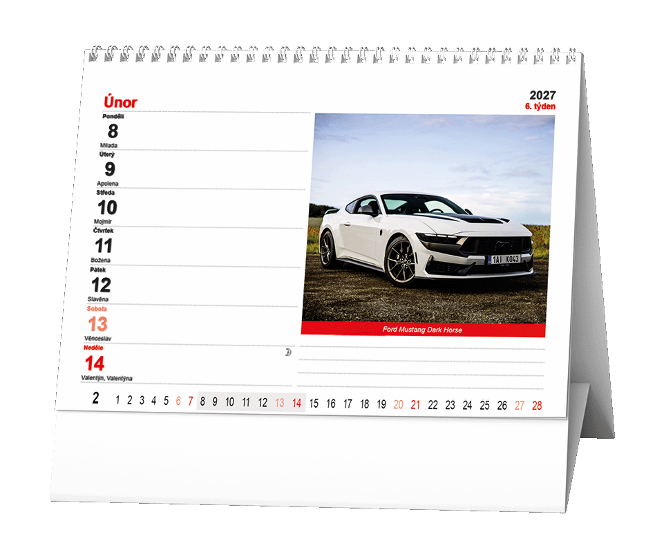 Stolní kalendář s týdenním kalendáriem pro milovníky krásných aut.