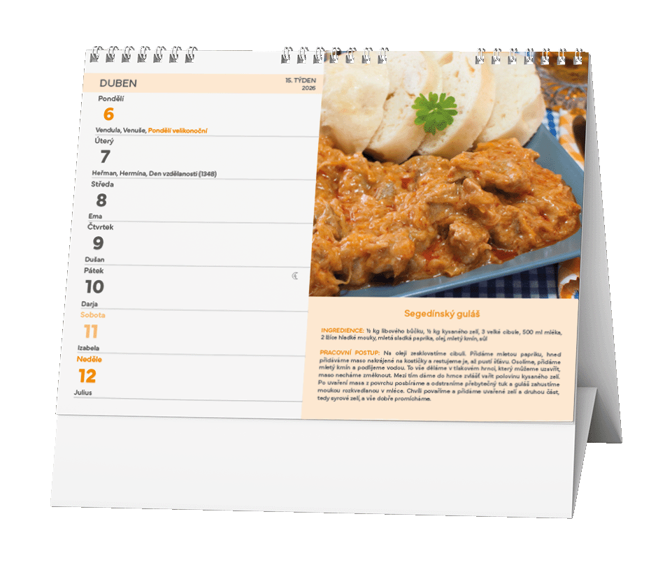 Stolní kalendář s týdenním kalendáriem a s recepty na tradiční české pokrmy.