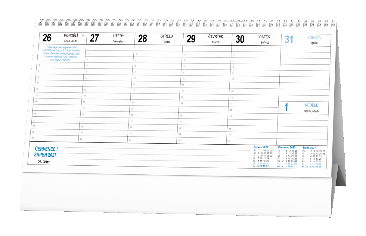 Tradice v novém designu. Oblíbený modrý kalendář s týdenním kalendáriem pro plánování Vašich daní.