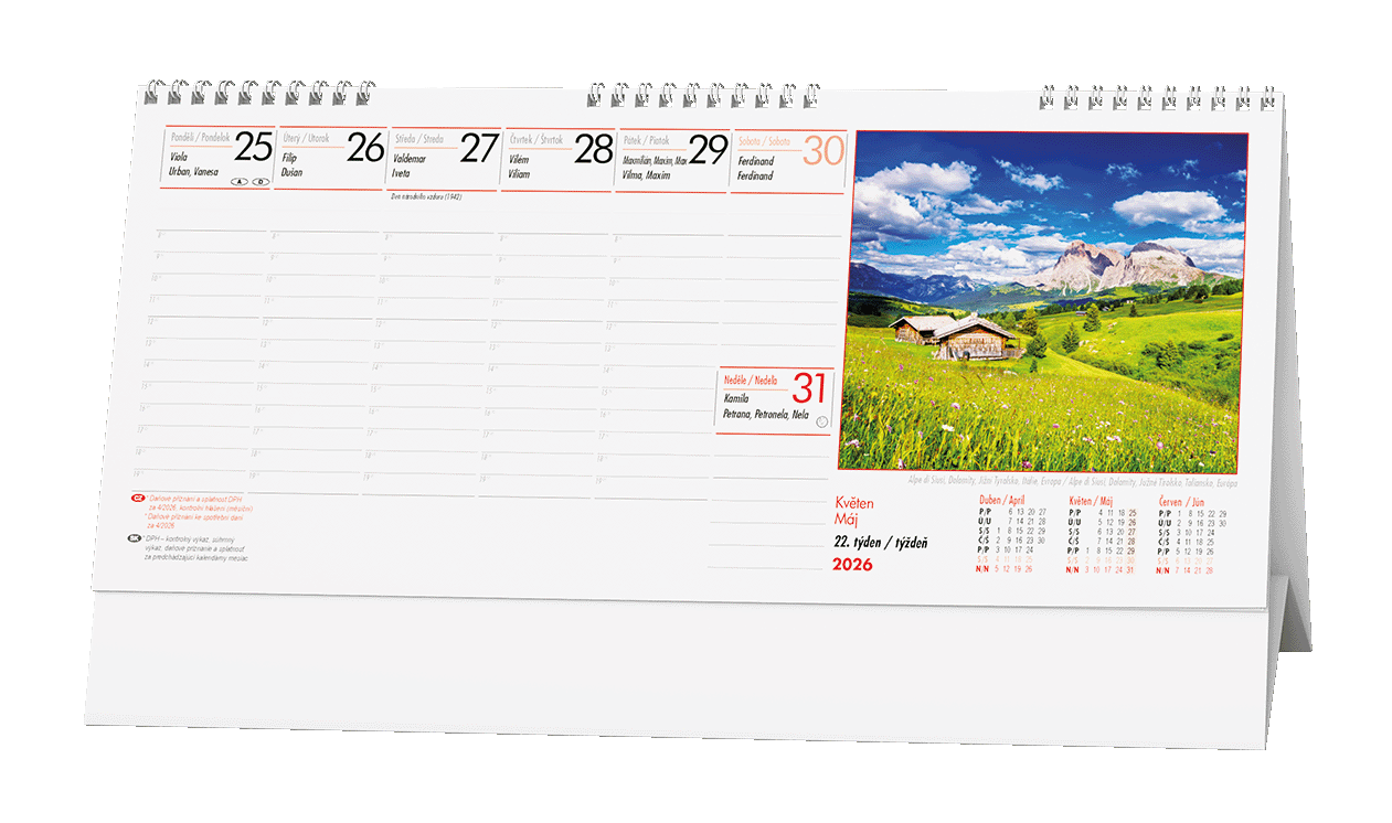Daňový kalendář s týdenním kalendáriem a motivem přírody, přesně na Váš stůl.