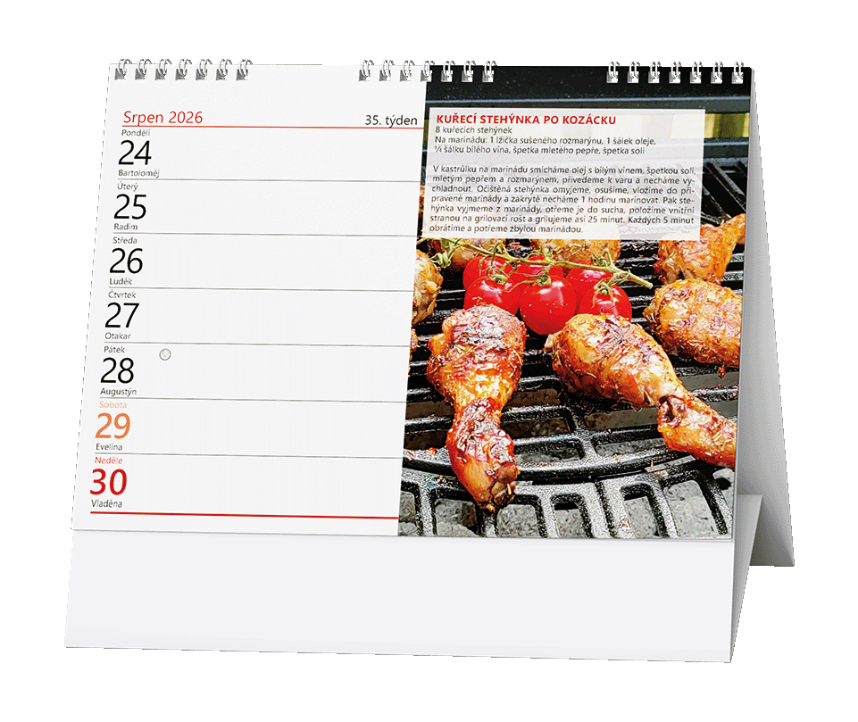 Stolní kalendář s týdenním kalendáriem a s tipy na grilování