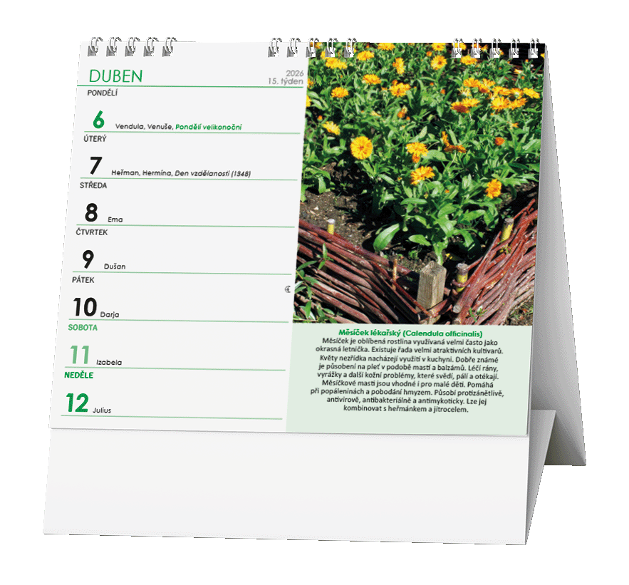 Ideální kalendář za ideální cenu s týdenním kalendáriem a v praktickém formátu, s informacemi o léčivých rostlinách.