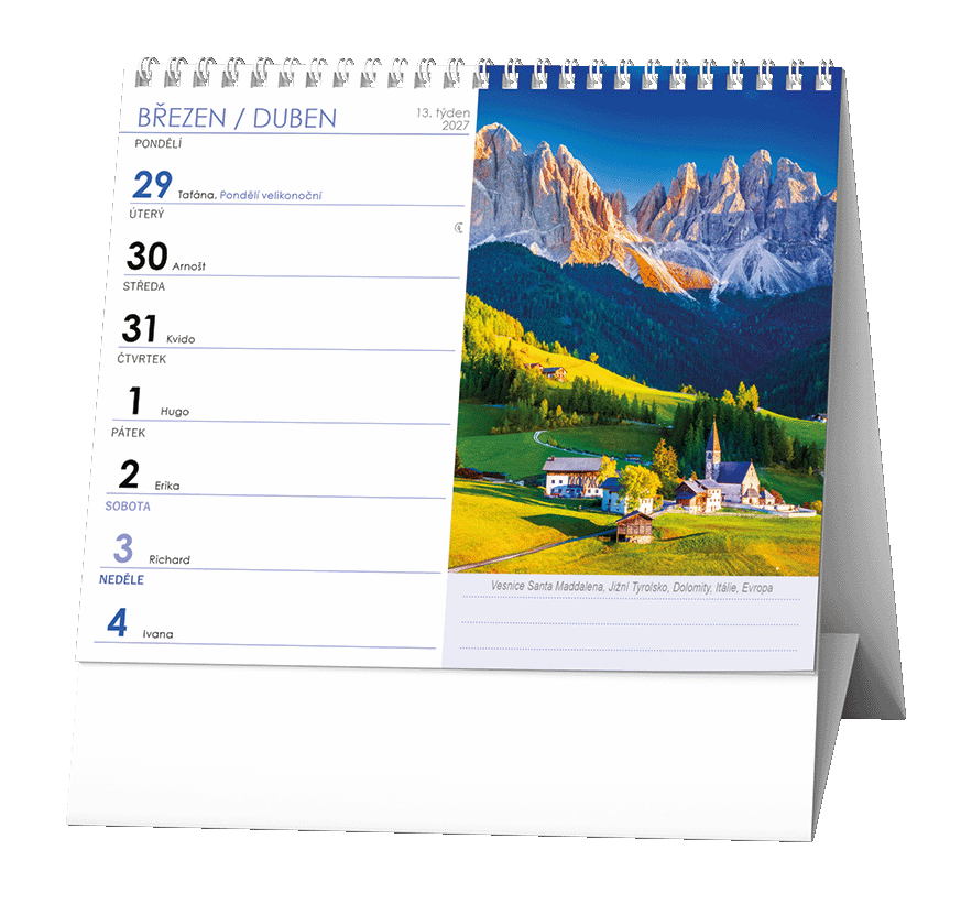 Ideální kalendář za ideální cenu s týdenním kalendáriem a v praktickém formátu s obrázky řek, hor a jezer.