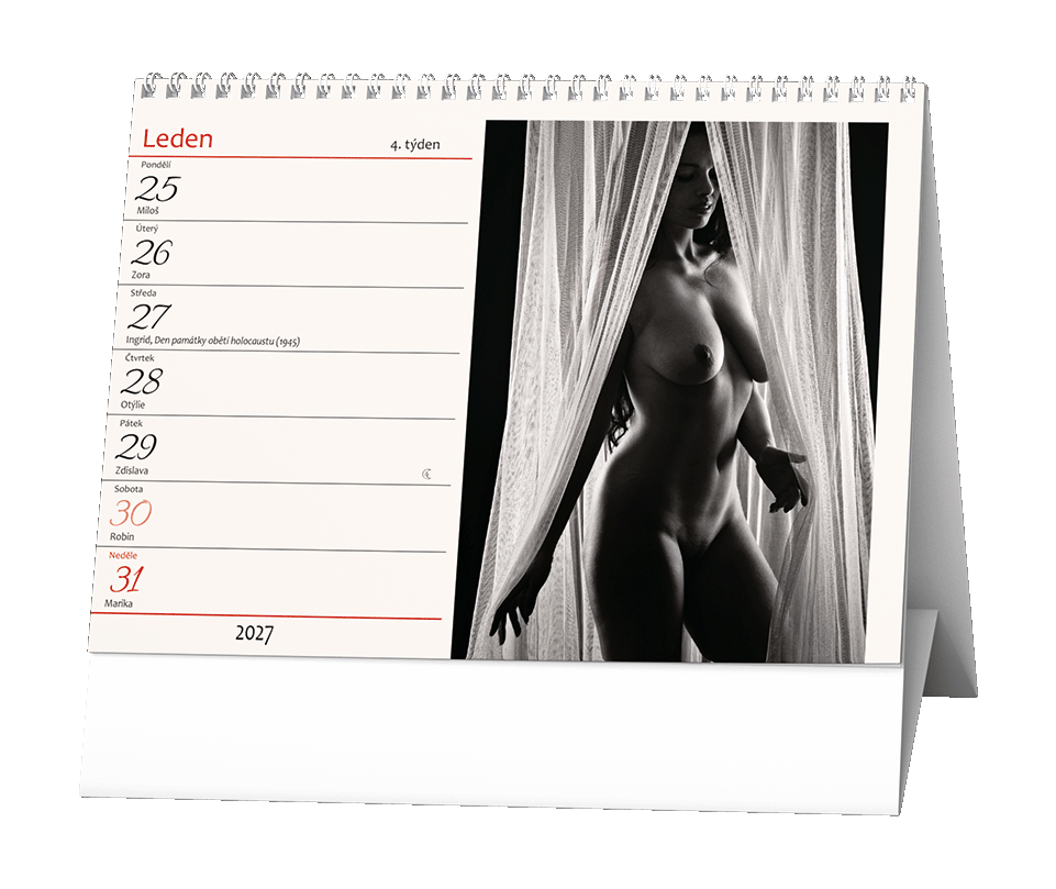 Stolní kalendář s erotickými obrázky v černobílém stylu pro všechny muže.