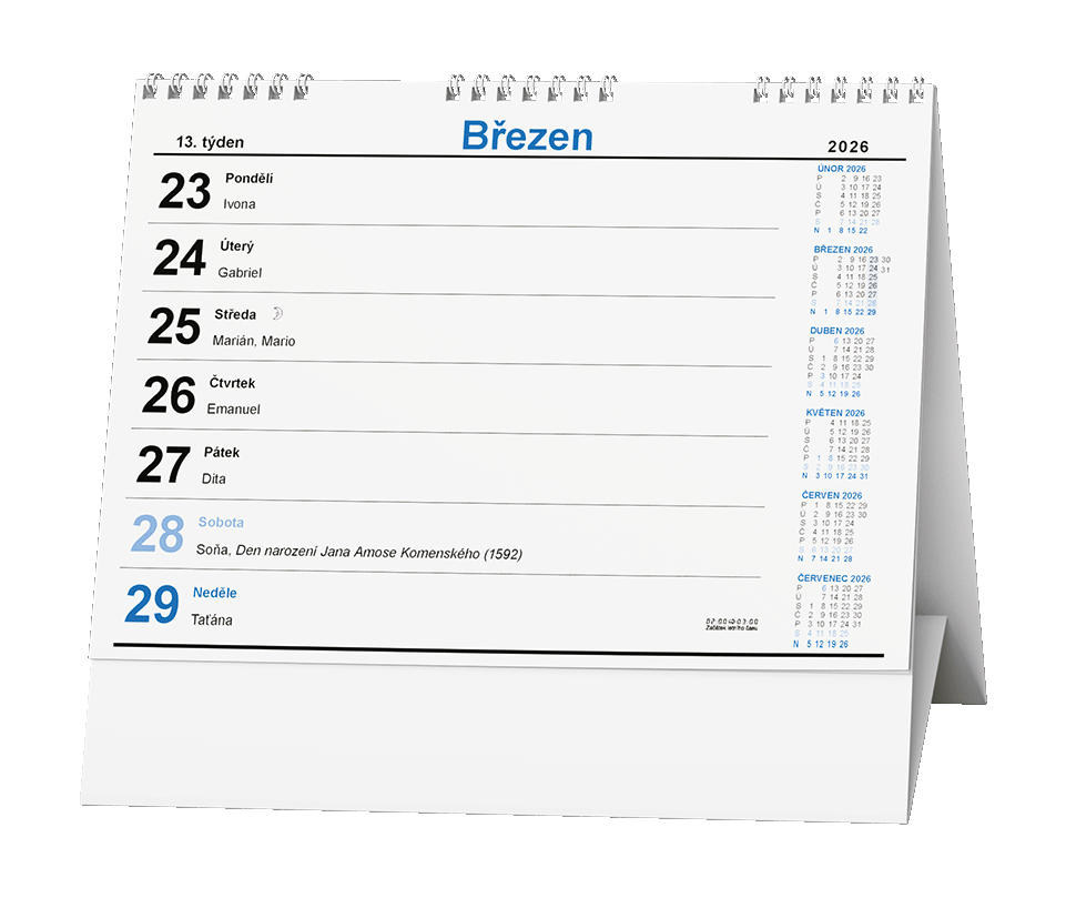 Pracovní kalendář v praktickém formátu a s týdenním kalendáriem. Zajímavý motiv oživí Váš stůl.