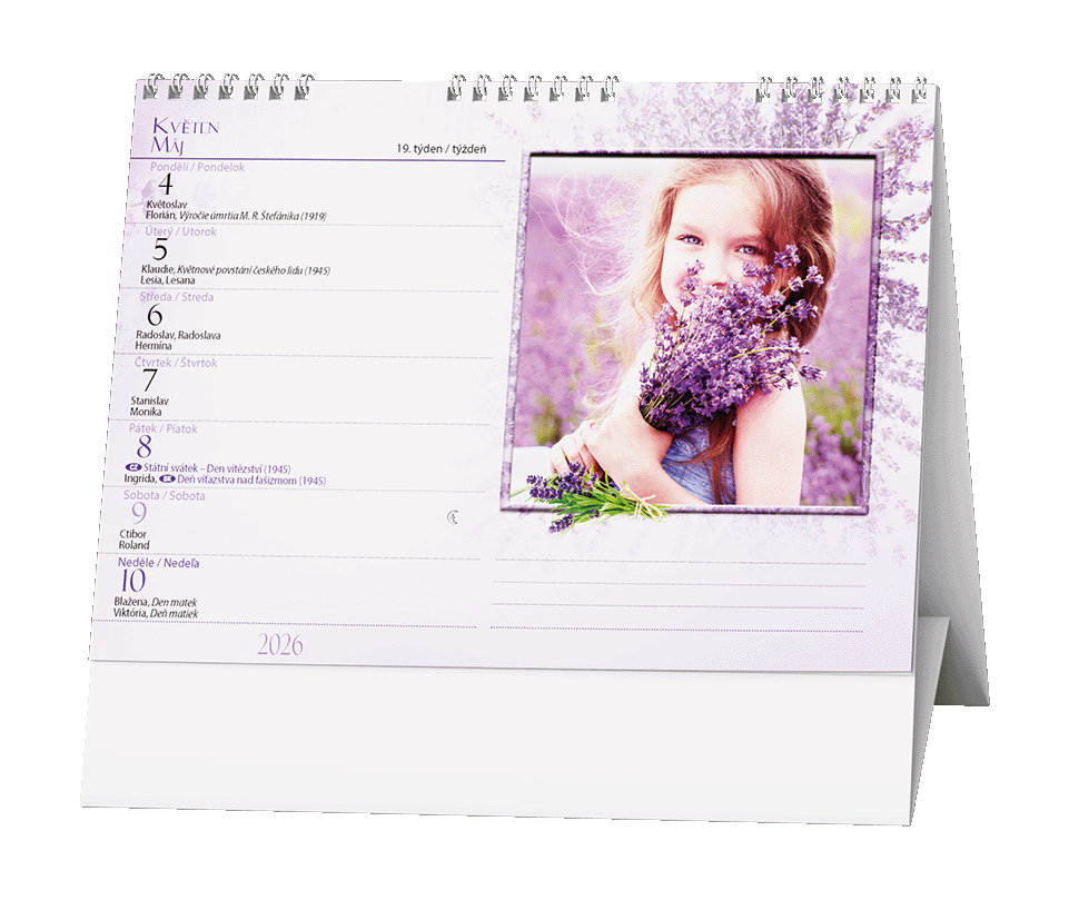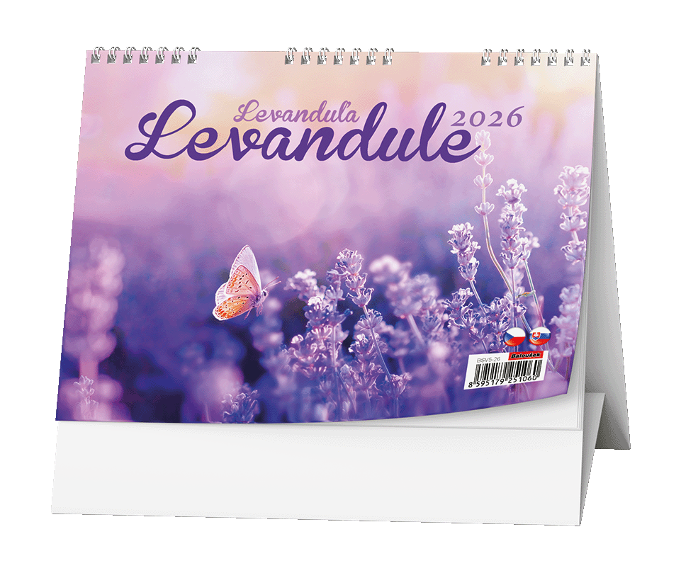 Stolní kalendář s týdenním kalendáriem a s levandulovým motivem.