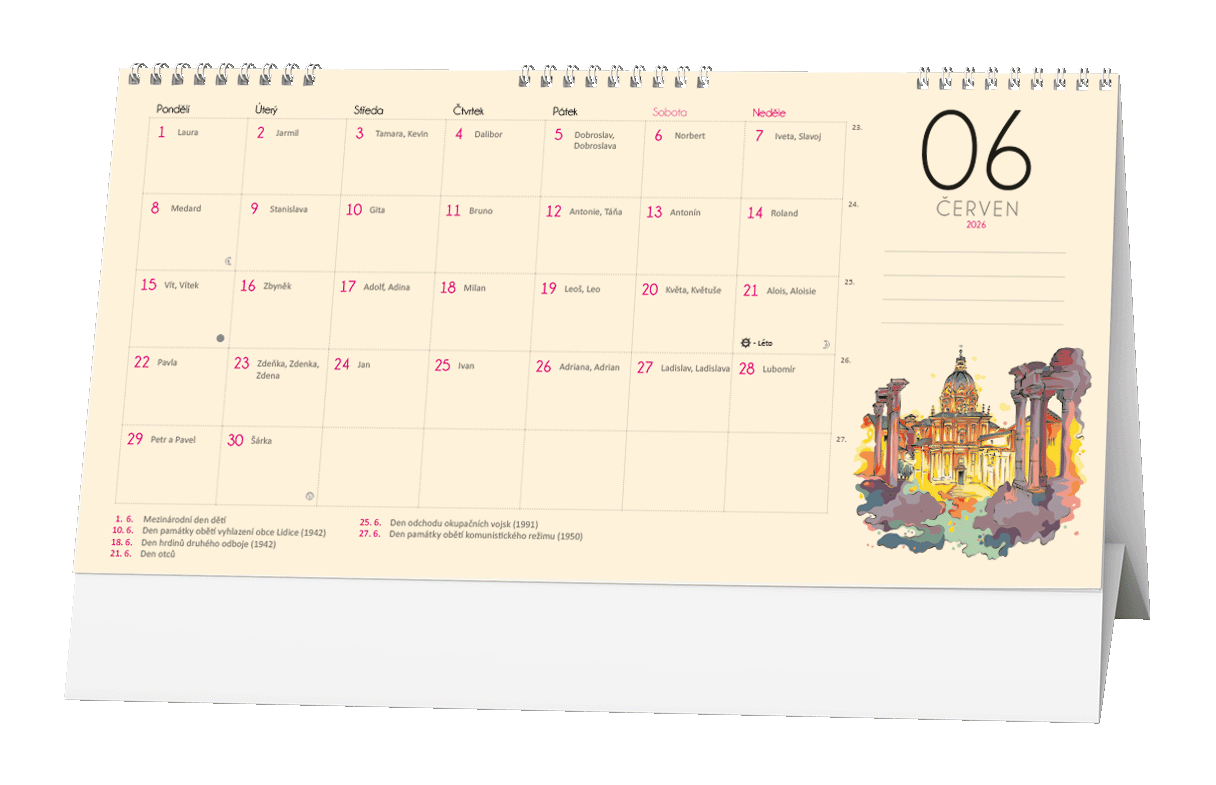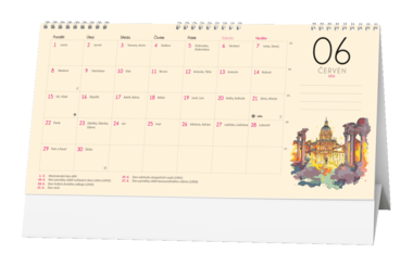 Výjimečný stolní kalendář s měsíčním kalendáriem, laděný do jemných barevných tónů s prostorem pro poznámky a plánování.