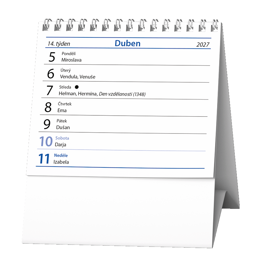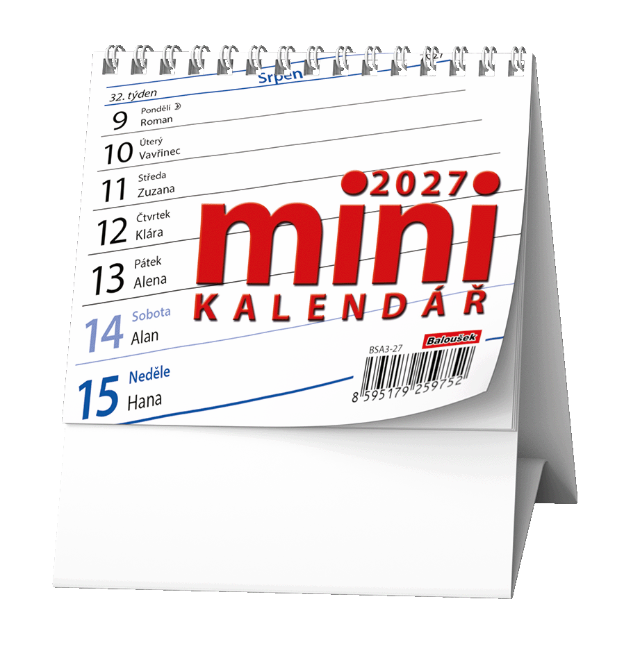 Praktický stolní kalendář s týdenním kalendáriem v mini formátu.