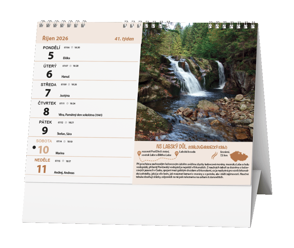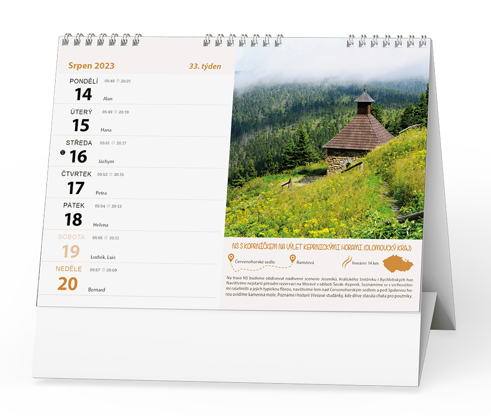 Stolní kalendář s týdenním kalendáriem s informacemi o naučných stezkách v naší zemi.
