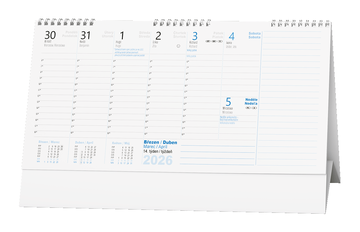 Plánovací daňový kalendář s týdenním kalendáriem a velkým prostorem pro poznámky. Mějte své daně pod kontrolou.