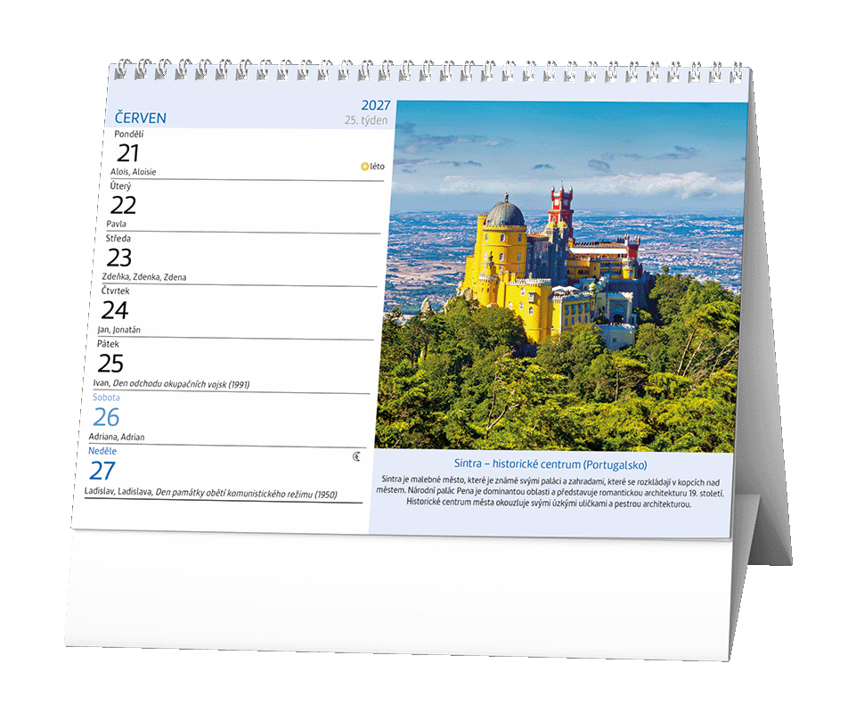kovová spirála "twin wire", obálka je tištěna na křídový papír s gramáží 135 g/m2, stojánek je z kvalitní bílé lepenky o gramáži 600g/m2 // 100g křída mat