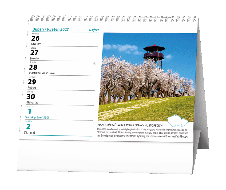 Stolní kalendář s týdenním kalendáriem s obrázky známých míst v naší zemi.