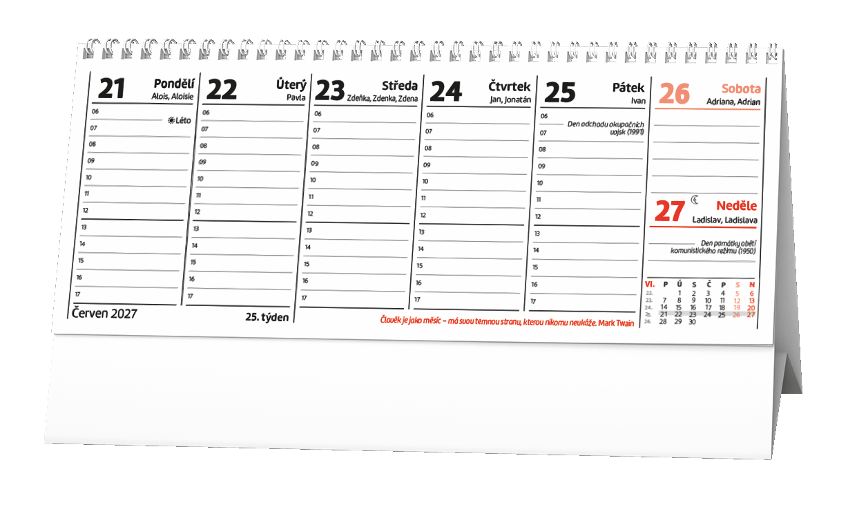 Pracovní kalendář s citáty na každý týden. V menším formátu a s týdenním kalendáriem bude Vašim praktickým pomocníkem.