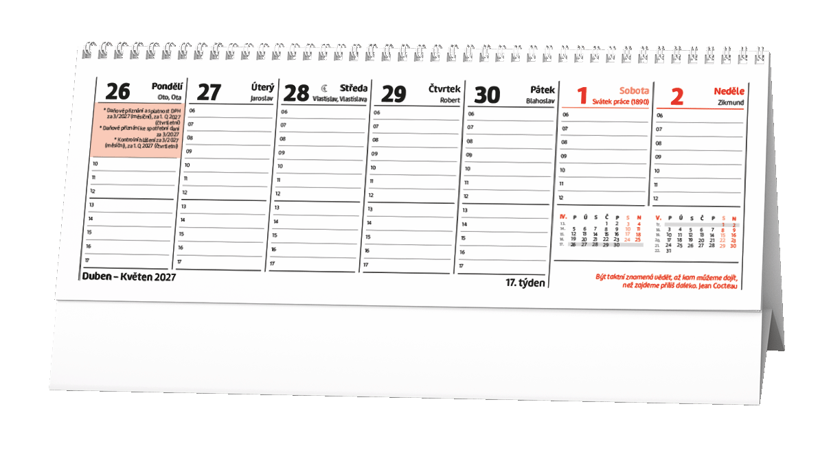 Pracovní kalendář s citáty na každý týden. V praktickém formátu a s týdenním kalendáriem bude Vašim pomocníkem.