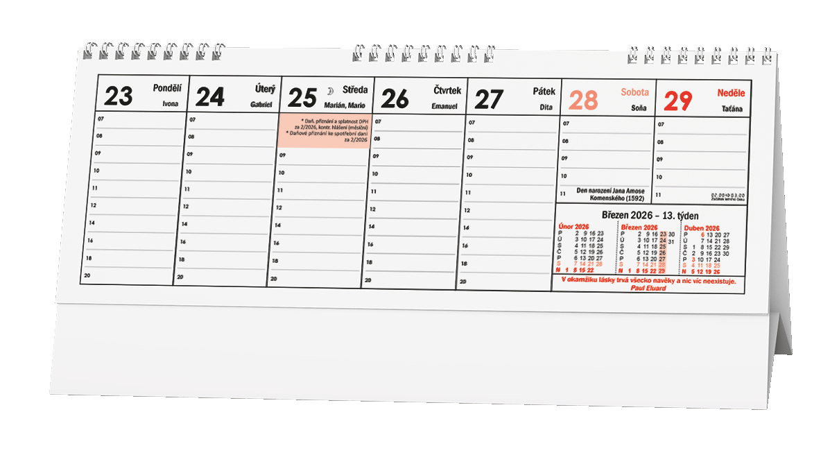 Pracovní kalendář s citáty na každý týden. V praktickém formátu a s týdenním kalendáriem bude Vašim pomocníkem.