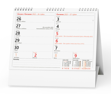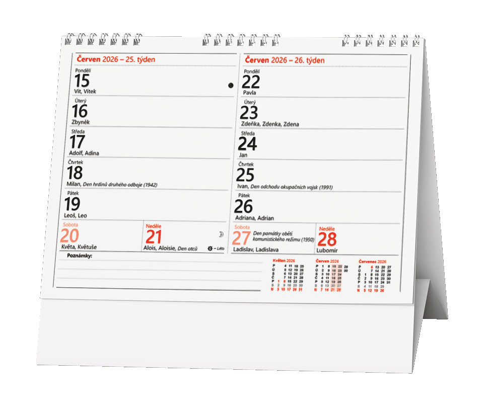 Pracovní kalendář se čtrnáctidenním kalendáriem a s prostorem pro poznámky a plánování.