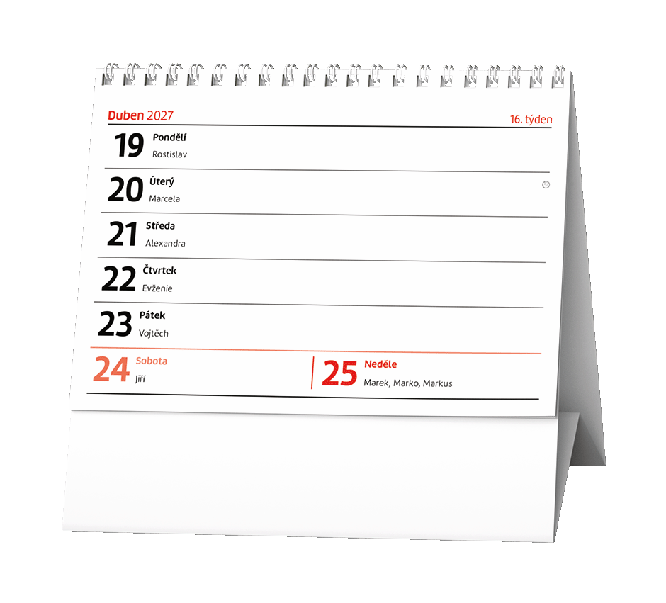 Jednoduchý stolní kalendář s barevným motivem s týdenním kalendáriem. Malý formát a trendy motiv oživí Váš den.