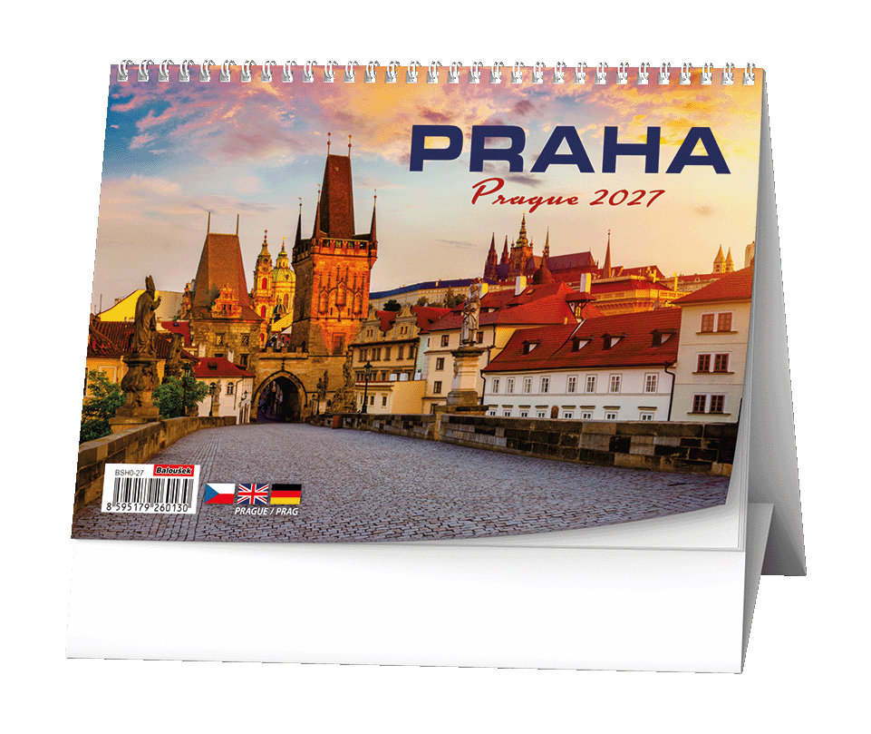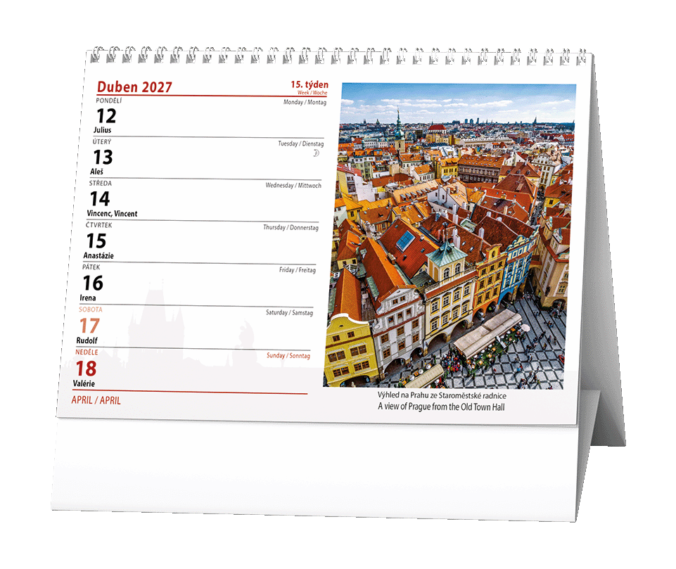 Stolní kalendář s týdenním kalendáriem s obrázky pražských zákoutí.