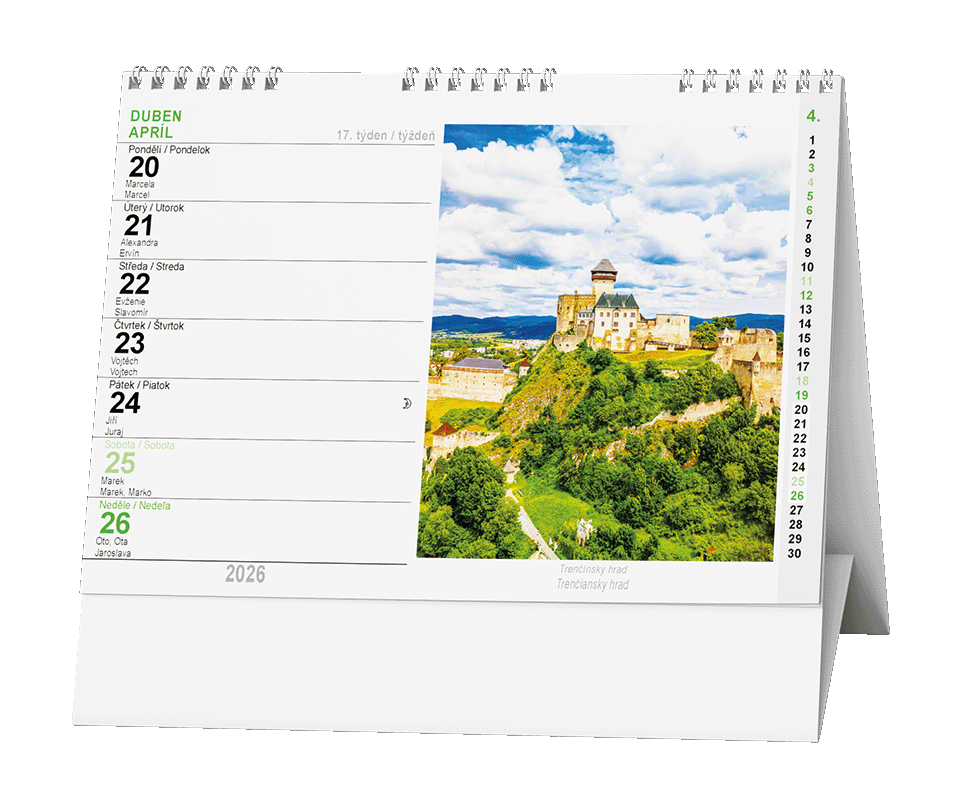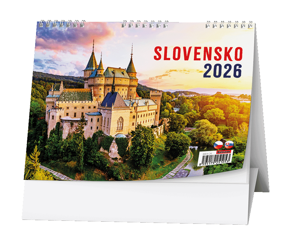 Stolní kalendář s týdenním kalendáriem s obrázky známých míst ve Slovenské republice.