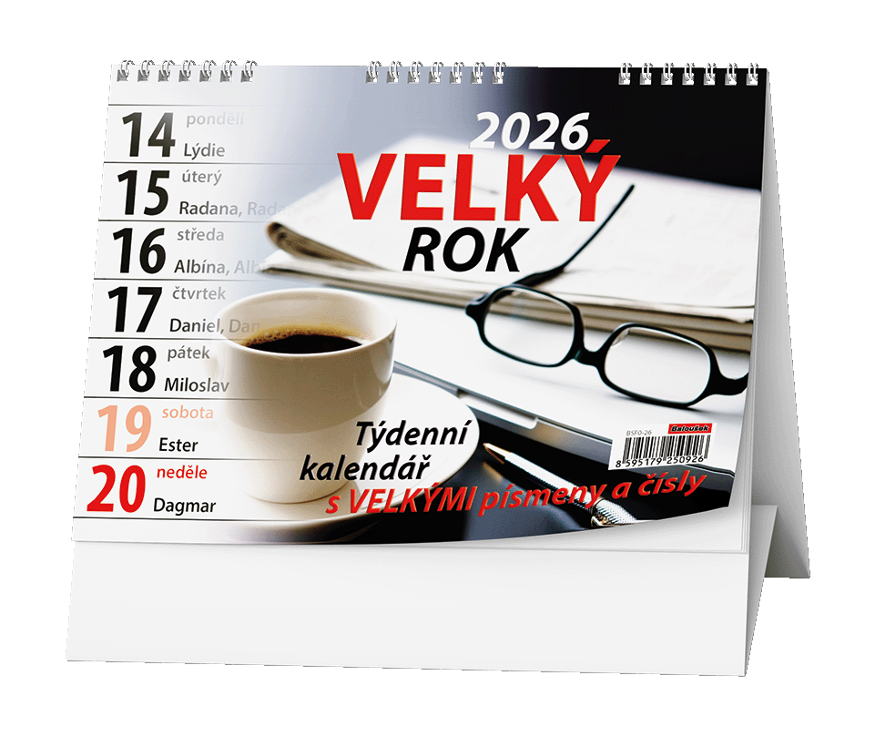 Stolní kalendář s týdenním kalendáriem s velkými písmeny a čísly, vhodný nejen pro seniory.