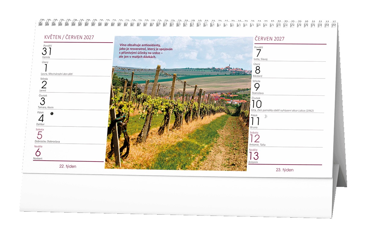 Vinaři pozor! Stolní kalendář se čtrnáctidenním kalendáriem pro všechny milovníky vína.
