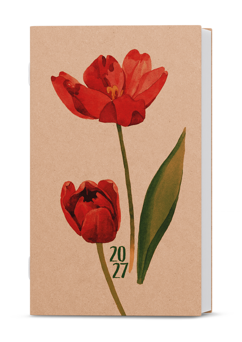 Jednoduchý a praktický týdenní diář v kraftovém provedení s květinovým motivem. Ideální pro každého, kdo si oblíbil měkkou šitou vazbu.