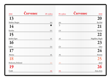 Jednoduchý a praktický týdenní diář vyrobený z jemného hladkého materiálu s polomatným povrchem v barvě bordó. Ideální pro každého, kdo si oblíbil měkkou šitou vazbu.