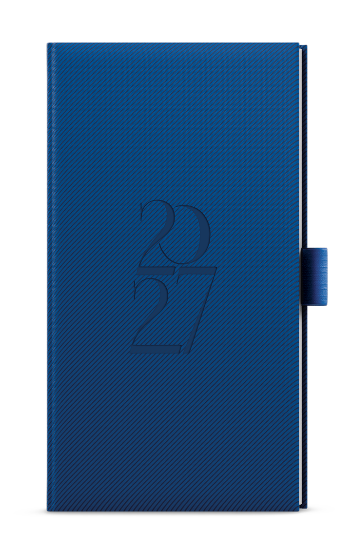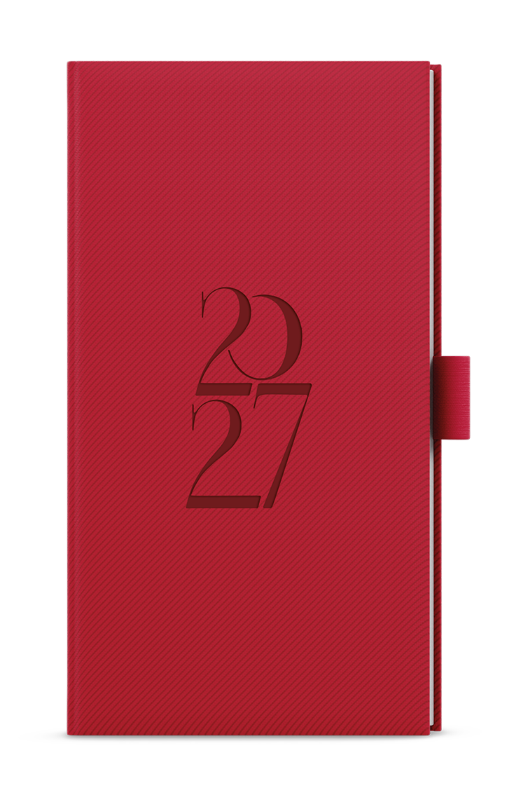 Týdenní kapesní diář z jemně strukturovaného materiálu s ražbou roku. Diář má navíc poutko na propisku.