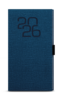 Kapesní týdenní diář z příjemného materiálu v modré barvě a s moderní ražbou roku. Trendy a praktický doplněk do každé kapsy. Diář má velký prostor pro poznámky a plánování.