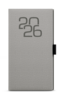 Kapesní týdenní diář z příjemného materiálu v šedé barvě a s moderní ražbou roku. Trendy a praktický doplněk do každé kapsy. Diář má velký prostor pro poznámky a plánování.