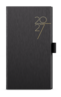 Kapesní týdenní diář v lesklé černé barvě se strukturovaným povrchem. Moderní doplněk do každé kapsy. Diář má velký prostor pro poznámky a plánování.