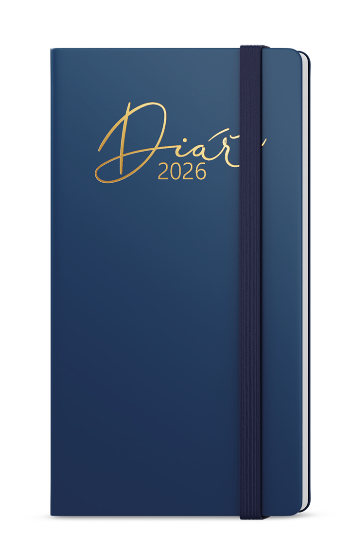 Kapesní týdenní diář v tmavě modré barvě a luxusní zlatou ražbou je malý pomocník pro Vaše plánování.