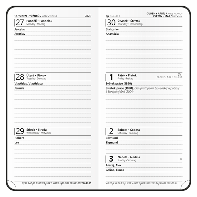 Kapesní týdenní diář v moderním jemném potahu, který imituje semiš. Praktický doplněk do každé kapsy, který Vám pomůže každodenně plánovat Váš volný čas. Díky modernímu potahu se diář stává skvělým doplňkem.