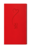Kapesní týdenní diář v červené barvě je vyráběný z jemné hladké vivelly s efektní ražbou s motivem Srdce. Trendy a praktický doplněk do každé kapsy. Diář má velký prostor pro poznámky a plánování.