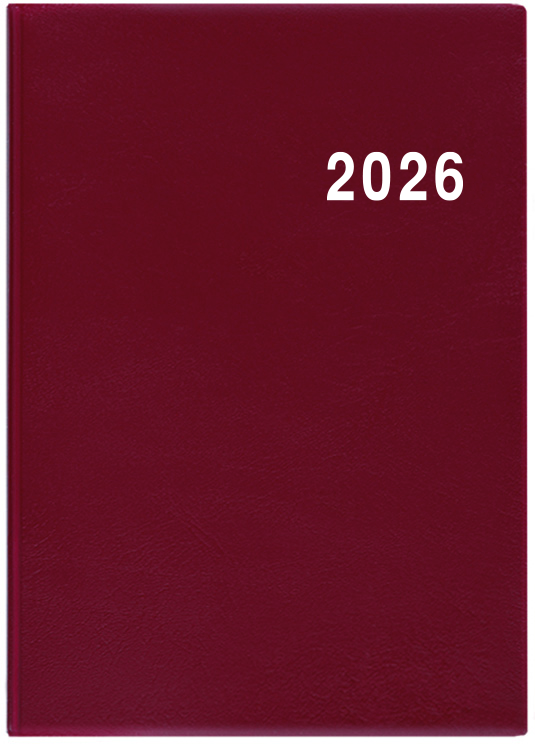 Jednoduchý a praktický týdenní diář vyrobený z jemného hladkého materiálu s polomatným povrchem v barvě bordó. Ideální pro každého, kdo si oblíbil měkkou šitou vazbu.